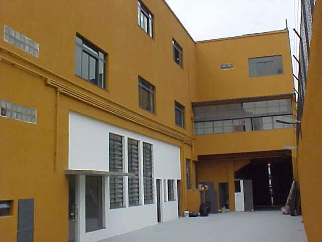 Com baixo custo, a edificação existente foi totalmente adaptada para o uso de escritórios. Foram executadas ampliações de área de treinamento e de segurança numa nova edificação localizada numa faixa estreita do terreno, que com pouca possibilidade de aberturas laterais, foi construída em sheeds para possibilitar melhor iluminação e ventilação.